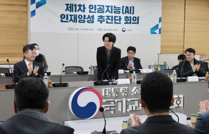 [서울=뉴스핌] 이길동 기자 = 최은옥 교육부 차관이 16일 서울 종로구 정부서울청사에서 열린 제1차 인공지능(AI) 인재양성 추진단 회의에서 인사를 하고 있다. 2025.12.16 gdlee@newspim.com