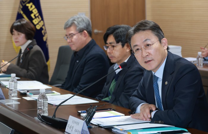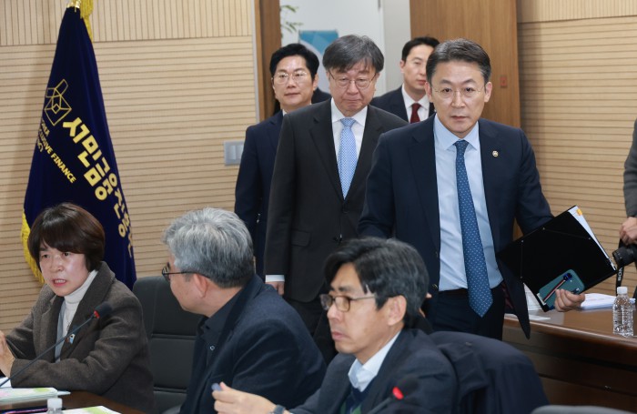 [서울=뉴스핌] 김학선 기자 = 이재연 서민금융진흥원장이 16일 서울 중구 서민금융진흥원에서 열린 복합지원 2주년 성과 점검 및 2026년 업무계획 발표 행사에 참석해 권대영 금융위원회 부위원장의 모두발언을 듣고 있다. 2025.12.16 yooksa@newspim.com
