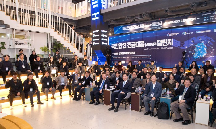 [서울=뉴스핌] 구혁채 과학기술정보통신부 제1차관이 16일 서울 성동구 KT&G상상플래닛에서 열린 국민안전 긴급대응(ASAP) 챌린지에서 참석자들과 기념촬영을 하고 있다. [사진=과학기술정보통신부] 2025.12.16 photo@newspim.com
