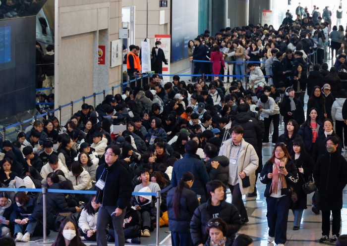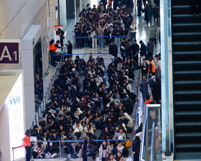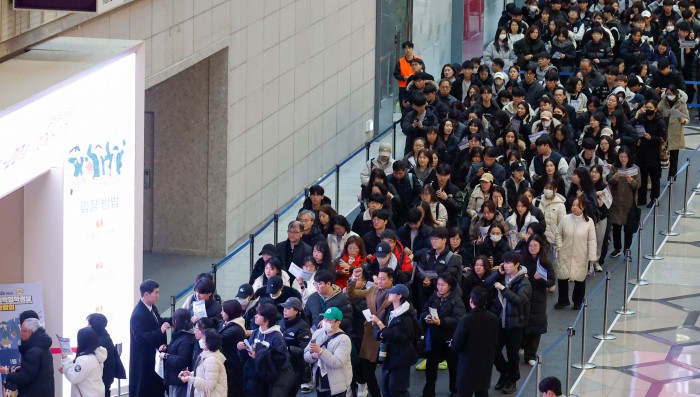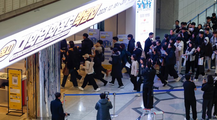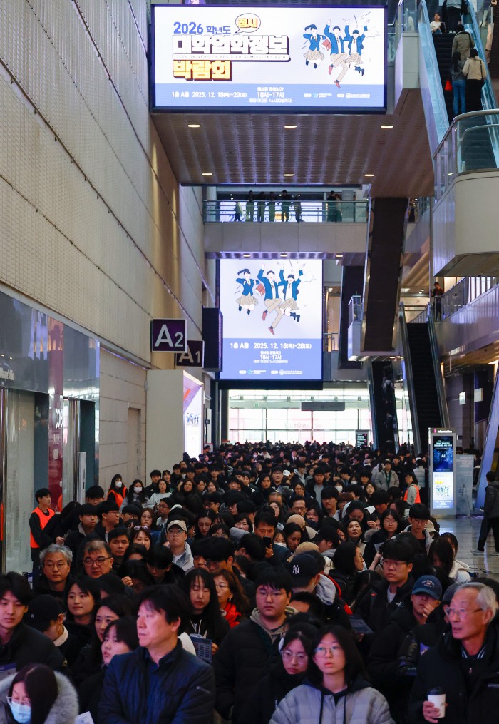[서울=뉴스핌] 류기찬 기자 = 18일 오전 서울 강남구 코엑스에서 열린 ‘2026학년도 정시 대학입학정보박람회’를 찾은 수험생과 학부모들이 입장을 하고 있다. 2025.12.18 ryuchan0925@newspim.com