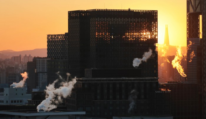 [서울=뉴스핌] 이길동 기자 = 서울 아침 기온이 영하 12도까지 떨어지는 등 전국에 강추위가 찾아온 26일 오전 서울 시내 건물들이 난방 수증기를 내뿜고 있다.2025.12.26. gdlee@newspim.com