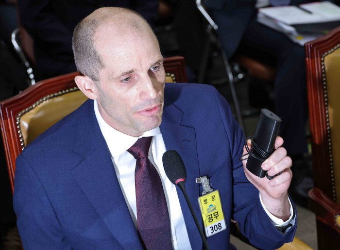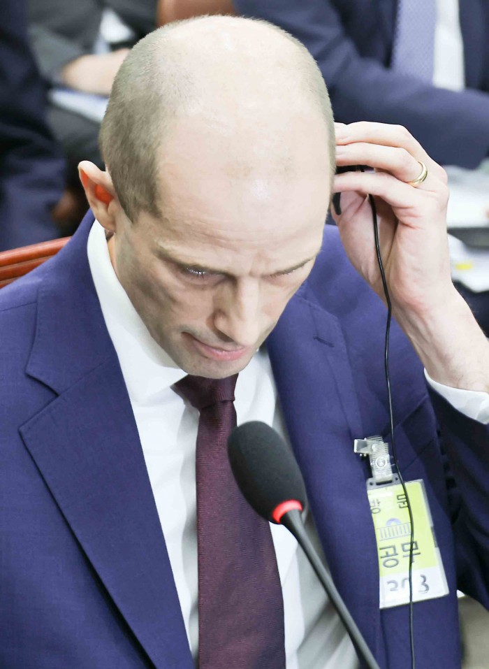 [서울=뉴스핌] 윤창빈 기자 = 해롤드 로저스 쿠팡 임시 대표가 30일 서울 여의도 국회 과학기술정보방송통신위원회 전체회의에서 열린쿠팡 침해사고 및 개인정보 유출, 불공정 거래, 노동환경 실태 파악과 재발방지 대책 마련을 위한 청문회에서 동시통역기를 착용하고 있다. 2025.12.30 pangbin@newspim.com