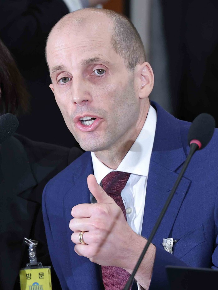 [서울=뉴스핌] 윤창빈 기자 = 해롤드 로저스 쿠팡 임시 대표가 30일 서울 여의도 국회 과학기술정보방송통신위원회 전체회의에서 열린쿠팡 침해사고 및 개인정보 유출, 불공정 거래, 노동환경 실태 파악과 재발방지 대책 마련을 위한 청문회에서 의원 질문에 답변하고 있다. 2025.12.30 pangbin@newspim.com