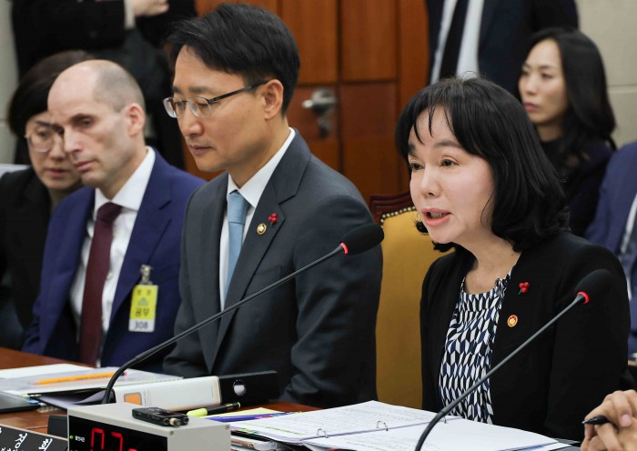 [서울=뉴스핌] 윤창빈 기자 = 김진아 외교부 차관이 30일 서울 여의도 국회 과학기술정보방송통신위원회 전체회의에서 열린쿠팡 침해사고 및 개인정보 유출, 불공정 거래, 노동환경 실태 파악과 재발방지 대책 마련을 위한 청문회에서 의원 질문에 답변하고 있다. 2025.12.30 pangbin@newspim.com