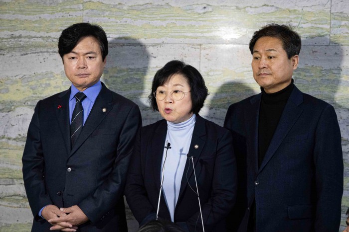 [서울=뉴스핌] 윤창빈 기자 = 국회 과학기술정보방송통신위원회 김현 더불어민주당 간사(가운데)와, 김영배 외교통일위원회 간사(오른쪽), 김현정 원내대변인이 31일 서울 여의도 국회 의안과에 쿠팡 불법행위 국정조사 요구서를 제출한 후 취재진 질문에 답하고 있다. 2025.12.31 pangbin@newspim.com