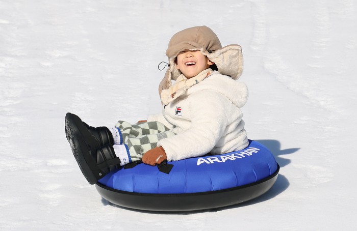 [서울=뉴스핌] 정일구 기자 = 31일 오후 서울 영등포구 여의도한강공원 눈썰매장을 찾은 어린이가 눈썰매를 즐기고 있다. 이날 개장한 뚝섬·잠원·여의도한강공원 눈썰매장은 내년 2월 18일까지 운영된다. 2025.12.31 mironj19@newspim.com