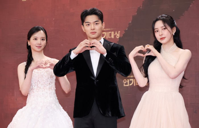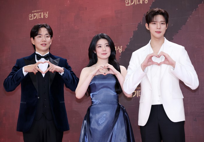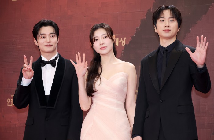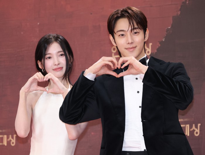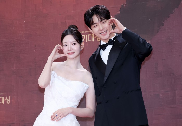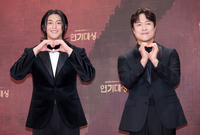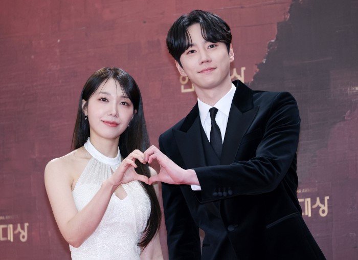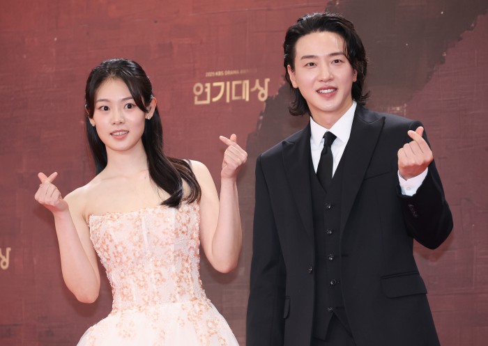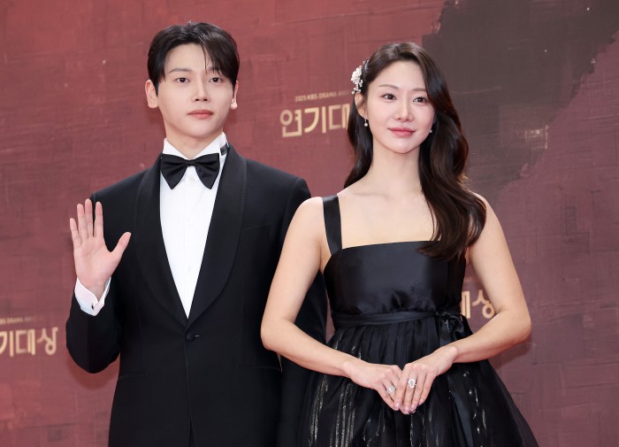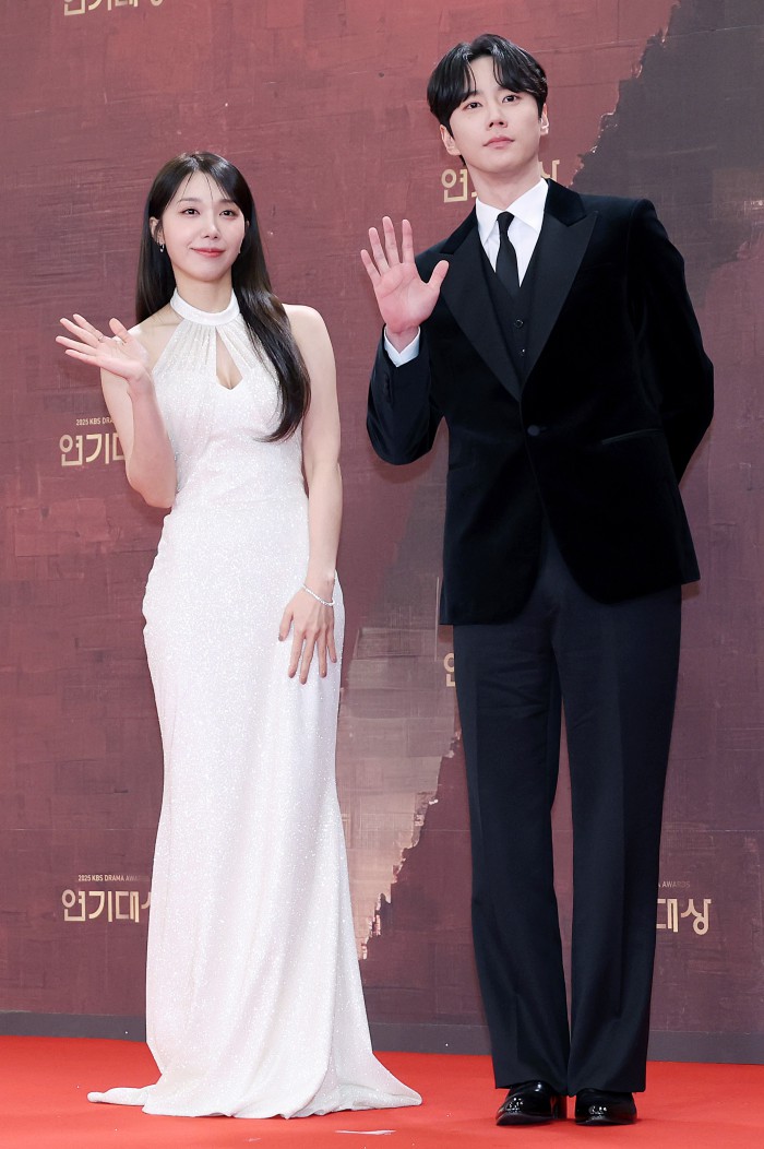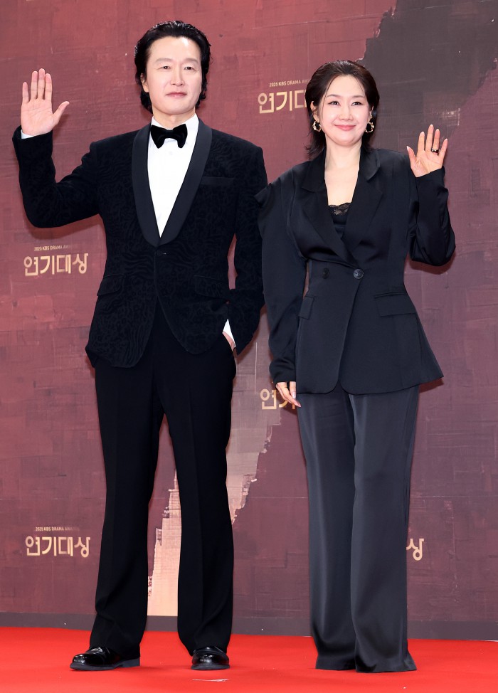 [서울=뉴스핌] 정일구 기자 = 배우 엄지원, 안재욱이 31일 오후 서울 영등포구 KBS 웨딩홀에서 열린 2025 KBS 연기대상 레드카펫에서 포즈를 취하고 있다. 2025.12.31 mironj19@newspim.com