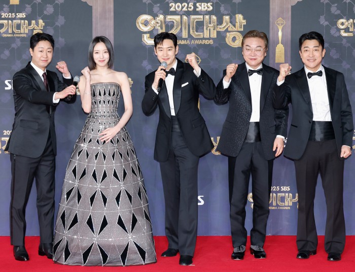 [서울=뉴스핌] 류기찬 기자 = 배우 정소민, 한지민, 김지연, 전여빈이 31일 오후 서울 마포구 SBS프리즘타워에서 열린 ‘2025 SBS 연기대상 시상식 포토월’에서 포즈를 취하고 있다. 2025.12.31 ryuchan0925@newspim.com