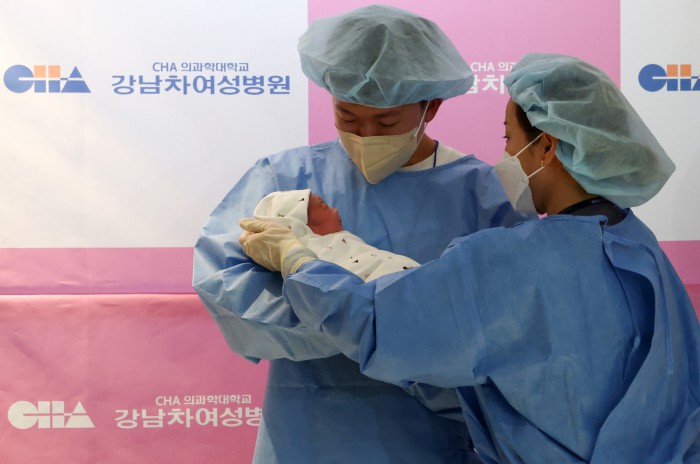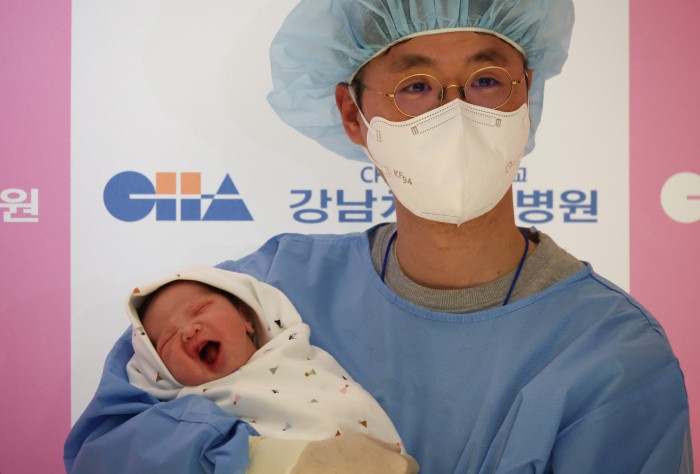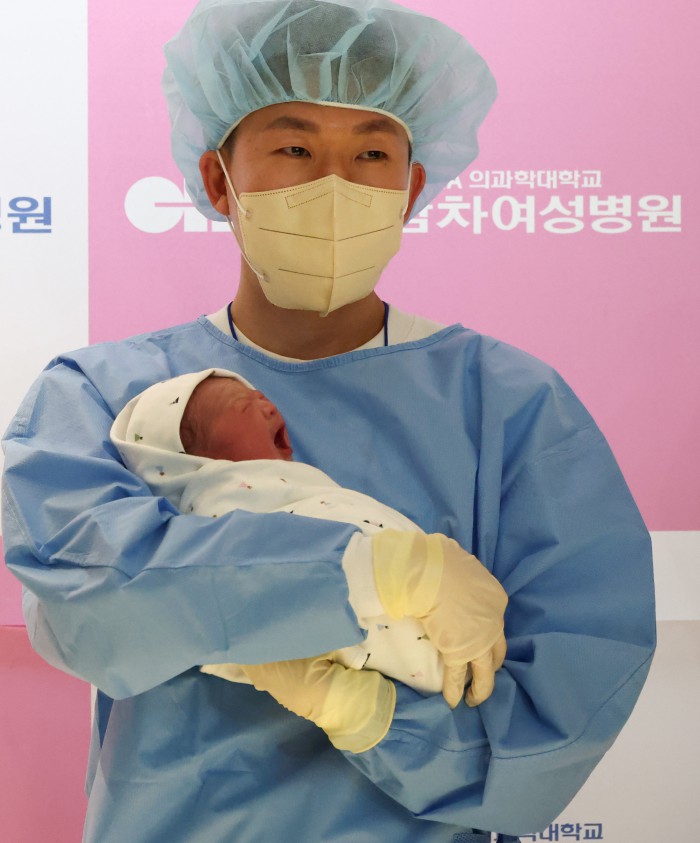 [서울=뉴스핌] 최지환 기자 = 1일 0시경 서울 강남구 강남차여성병원에서 태어난 2026년 새해 첫 아기가 힘차게 울음을 터뜨리고 있다. 엄마 황혜련(37), 아빠 정동규씨(36) 사이에 태어난 도리(태명)가 아빠 품에 안겨 있다. 2026.01.01 choipix16@newspim.com