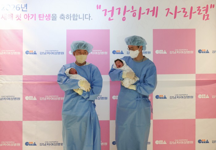 [서울=뉴스핌] 최지환 기자 = 1일 0시경 서울 강남구 강남차여성병원에서 태어난 2026년 새해 첫 아기가 힘차게 울음을 터뜨리고 있다. 왼쪽은 엄마 황은정(37), 아빠 윤성민씨(38) 사이에 태어난 쨈이(태명), 오른쪽은 엄마 황혜련(37), 아빠 정동규씨(36) 사이에 태어난 도리(태명). 2026.01.01 choipix16@newspim.com