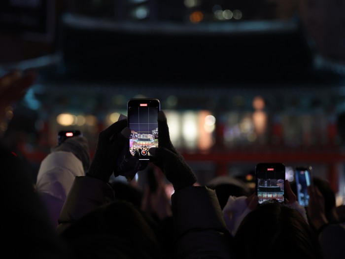 [서울=뉴스핌] 정일구 기자 = 병오년(丙午年) 새해 첫날인 1일 오전 서울 종로구 보신각에서 열린 2025 제야의 종 타종행사에서 한 시민이 타종을 카메라로 촬영하고 있다. 2026.01.01 mironj19@newspim.com