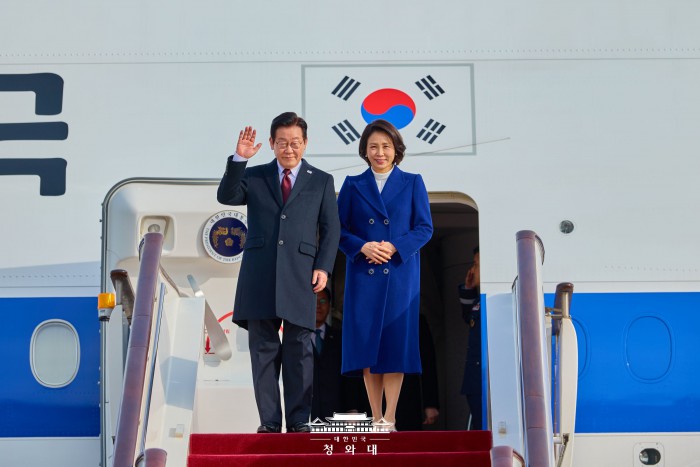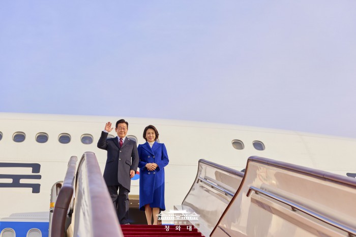 [서울=뉴스핌] 이재명 대통령과 김혜경 여사가 지난 4일 중국 베이징 서우두 공항에 도착해 공군 1호기에서 이동하고 있다. [사진=대통령실] 2026.01.05 photo@newspim.com