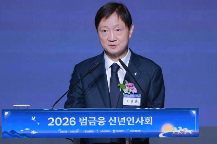 [서울=뉴스핌] 양윤모 기자 = 새해 금융업계의 현안과 비전을 공유하는 연례 행사인 '2026 범금융 신년인사회'가 5일 오후 서울 중구 소공동 롯데호텔에서 개최된 가운데,이찬진 금융감독원장이 신년사를 하고 있다. 행사에는 이형일 재정경제부 1차관,이억원 금융위원장,이찬진 금융감독원장,이창용 한국은행 총재 등 정부 인사, 국회 정무·기획재정위원회 의원, 5대 금융지주 회장, 은행·증권·보험·카드·저축은행 최고경영자(CEO) 등 약 400여 명이 참석했다. [공동취재] 2026.01.05 yym58@newspim.com
