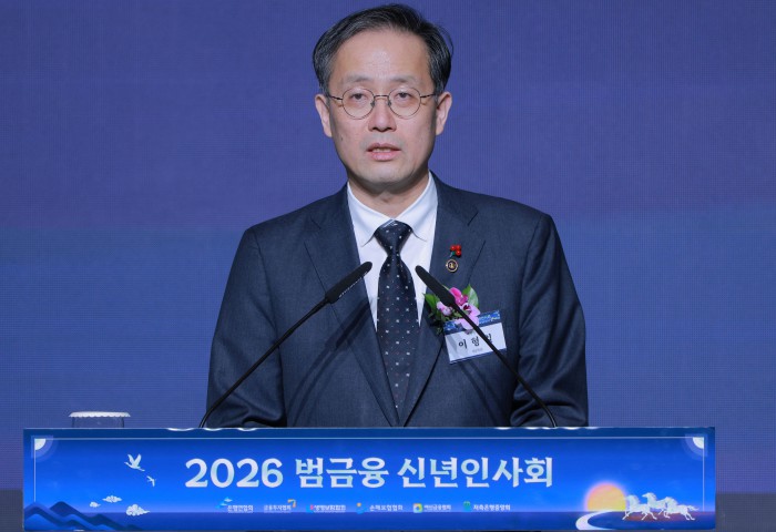 [서울=뉴스핌] 양윤모 기자 = 새해 금융업계의 현안과 비전을 공유하는 연례 행사인 '2026 범금융 신년인사회'가 5일 오후 서울 중구 소공동 롯데호텔에서 개최된 가운데,이억원 금융위원장이 신년사를 하고 있다. 행사에는 이형일 재정경제부 1차관,이억원 금융위원장,이찬진 금융감독원장,이창용 한국은행 총재 등 정부 인사, 국회 정무·기획재정위원회 의원, 5대 금융지주 회장, 은행·증권·보험·카드·저축은행 최고경영자(CEO) 등 약 400여 명이 참석했다. [공동취재] 2026.01.05 yym58@newspim.com