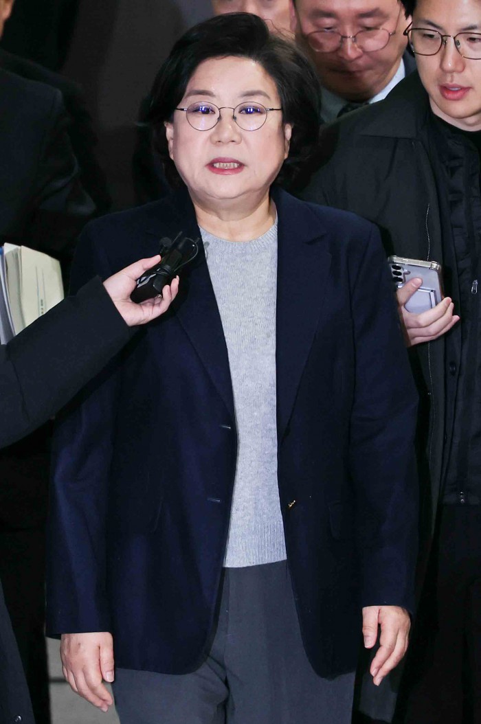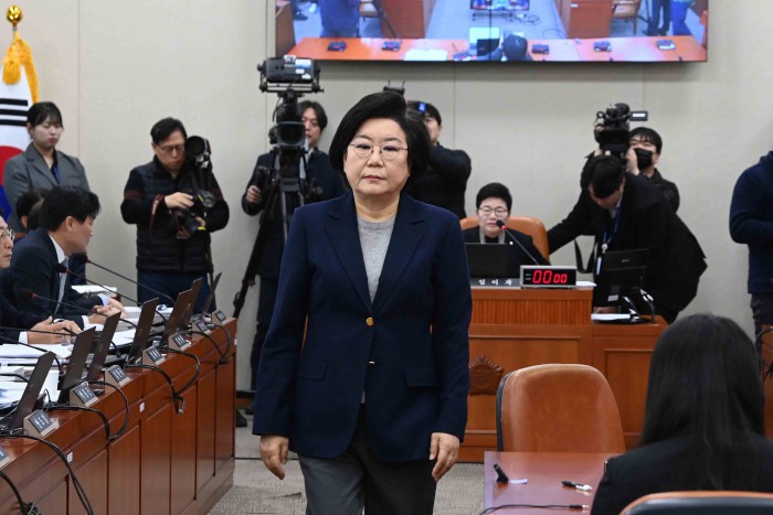[서울=뉴스핌] 윤창빈 기자 = 이혜훈 기획예산처 장관 후보자가 23일 오전 서울 여의도 국회 재정경제기획위원회에서 열린 인사청문회에서 임이자 위원장에게 선서문을 전달한 뒤 자리로 이동하고 있다. 2026.01.23 pangbin@newspim.com