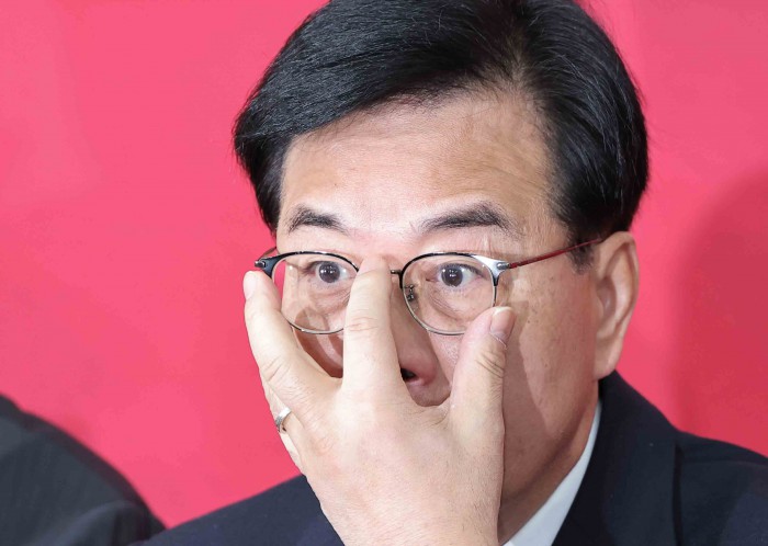 [서울=뉴스핌] 윤창빈 기자 = 송언석 국민의힘 원내대표가 26일 서울 여의도 국회에서 열린 최고위원회의에서 안경을 고쳐쓰고 있다. 2026.01.26 pangbin@newspim.com