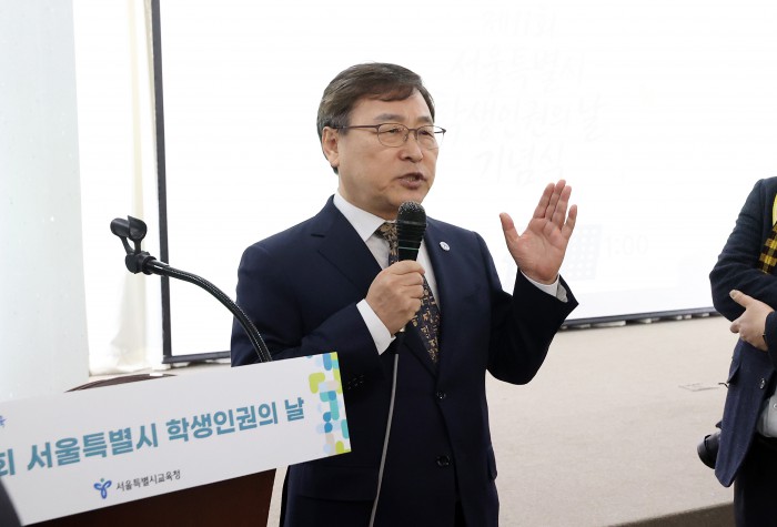 [서울=뉴스핌] 정일구 기자 = 정근식 서울시교육감이 26일 오전 서울 중구 서울시청 서소문별관 후생동에서 열린 제11회 서울특별시 학생인권의 날 기념식에서 기념사를 하고 있다. 2026.01.26 mironj19@newspim.com