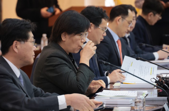 [서울=뉴스핌] 이길동 기자 = 정은경 보건복지부 장관이 26일 서울 종로구 정부서울청사에서 열린 2026년도 제1차 국민연금기금운용위원회에서 물을 마시고 있다. 2026.01.26 gdlee@newspim.com