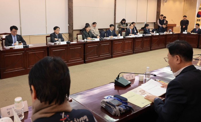 [서울=뉴스핌] 이길동 기자 = 권창준 고용노동부 차관(왼쪽)과 문신학 산업통상자원부 1차관이이 26일 서울 종로구 정부서울청사에서 열린 2026년도 제1차 국민연금기금운용위원회에서 대화를하고 있다. 2026.01.26 gdlee@newspim.com