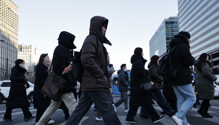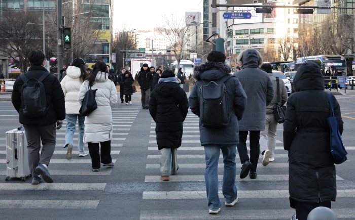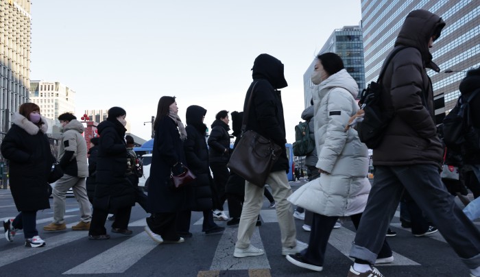 [서울=뉴스핌] 양윤모 기자 = 30일 오전 계속되는 한파주의보속 서울의 아침 체감온도가 영하 12도를 나타내고 있는 가운데 종로구 세종대로 사거리에서 시민들이 출근을 위해 이동하고 있다. 2026.01.30 yym58@newspim.com