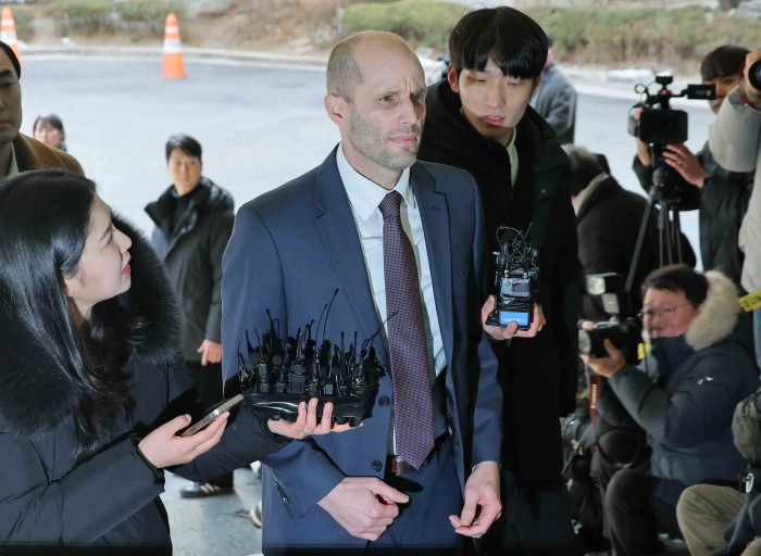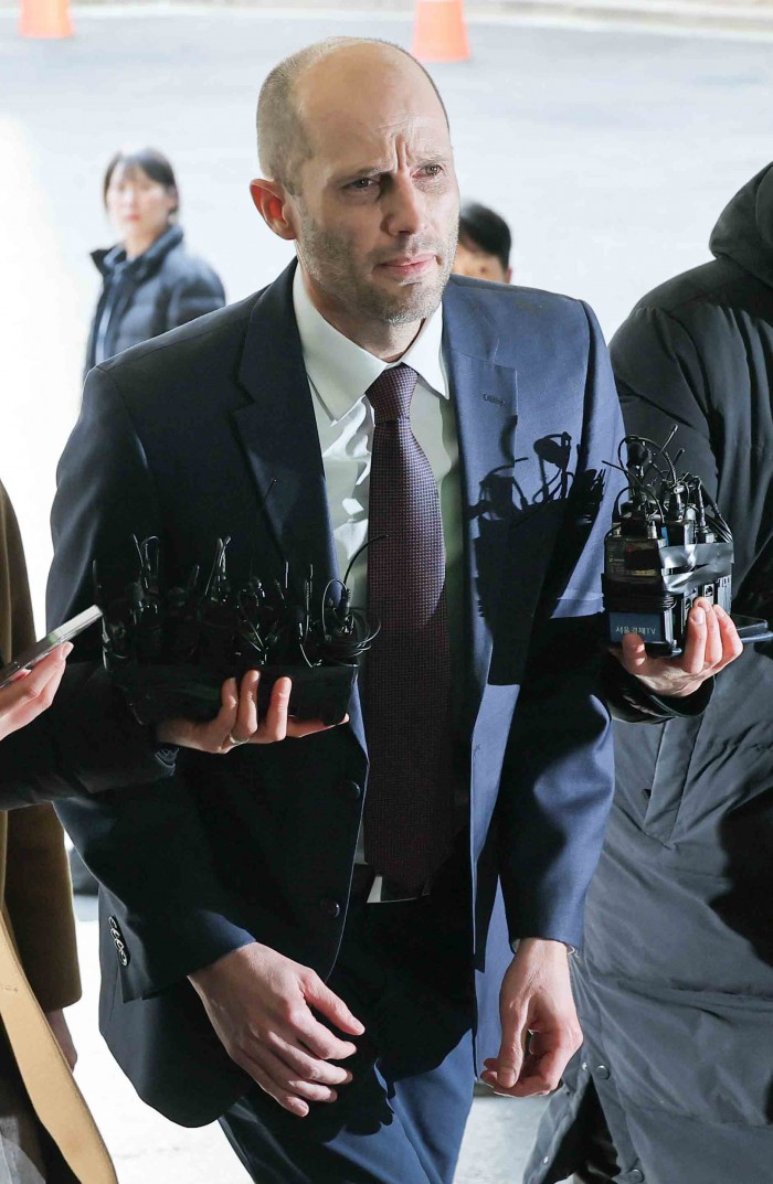 [서울=뉴스핌] 윤창빈 기자 = 쿠팡의 대규모 개인정보 유출 사태에 대해 '셀프 조사'로 증거를 인멸한 혐의를 받는 해롤드 로저스 쿠팡 한국 임시 대표가 30일 오후 서울 종로구 서울경찰청에서 수사를 받기 위해 출석하며 취재진의 질문을 듣고 있다. 2026.01.30 pangbin@newspim.com