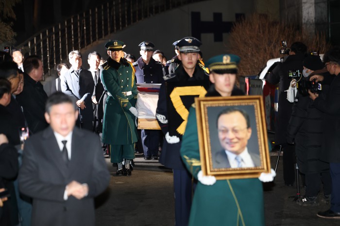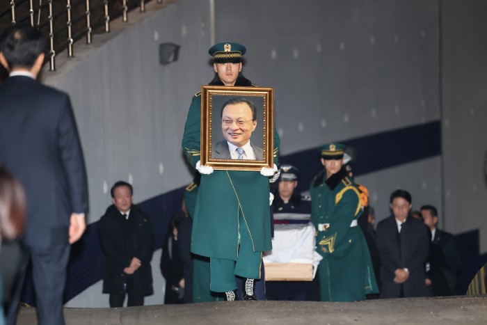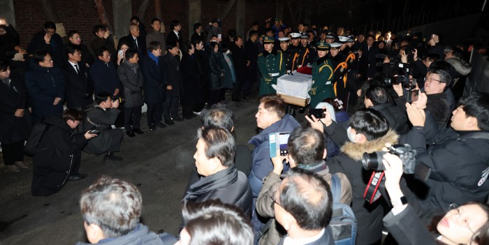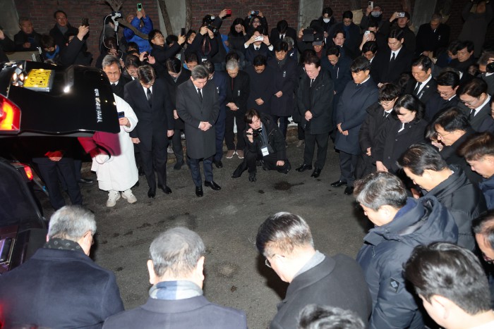 [서울=뉴스핌] 이형석 기자 = 고(故) 이해찬 전 국무총리의 발인이 31일 오전 서울 종로구 서울대학교병원 장례식장에서 엄수되고 있다. 2026.01.31 leehs@newspim.com