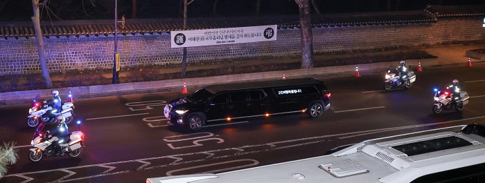 [서울=뉴스핌] 이형석 기자 = 고(故) 이해찬 전 국무총리의 발인이 31일 오전 서울 종로구 서울대학교병원 장례식장에서 엄수됐다. 운구차량이 영결식이 열리는 국회로 이동하고 있다. 2026.01.31 leehs@newspim.com
