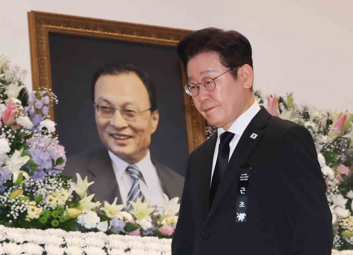 [서울=뉴스핌] 윤창빈 기자 = 이재명 대통령이 31일 오전 서울 여의도 국회 의원회관에서 열린 고(故) 이해찬 전 국무총리 영결식에서 헌화를 마치고 나서고 있다. 2026.01.31 pangbin@newspim.com