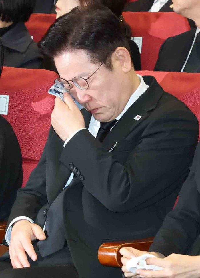 [서울=뉴스핌] 윤창빈 기자 = 이재명 대통령, 김혜경 여사가 31일 오전 서울 여의도 국회 의원회관에서 열린 고(故) 이해찬 전 국무총리 영결식에서 눈물을 훔치고 있다. 2026.01.31 pangbin@newspim.com