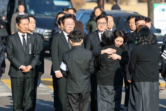 [서울=뉴스핌] 윤창빈 기자 = 이재명 대통령과 김혜경 여사가 31일 서울 여의도 국회의원회관에서 이해찬 전 국무총리 사회장 영결식이 끝난 뒤 유족들을 위로하고 있다. 2026.01.31 pangbin@newspim.com