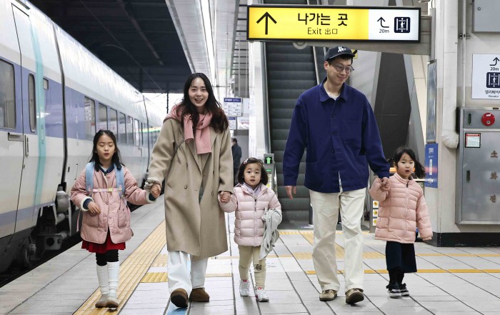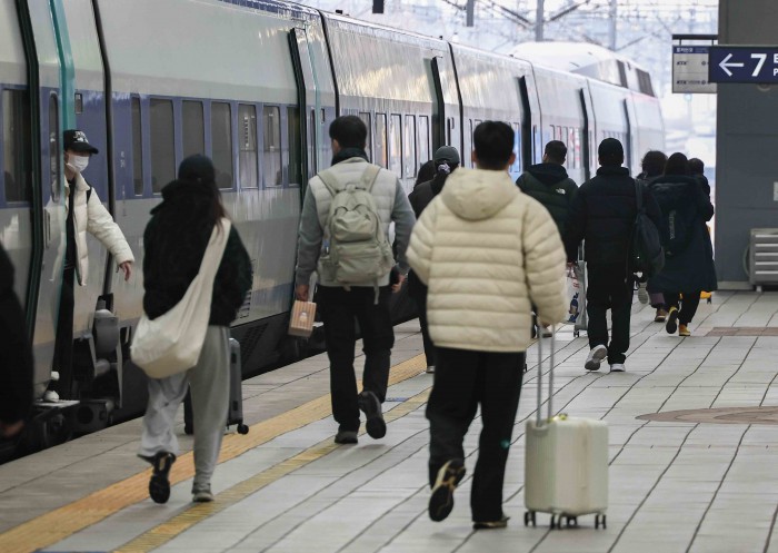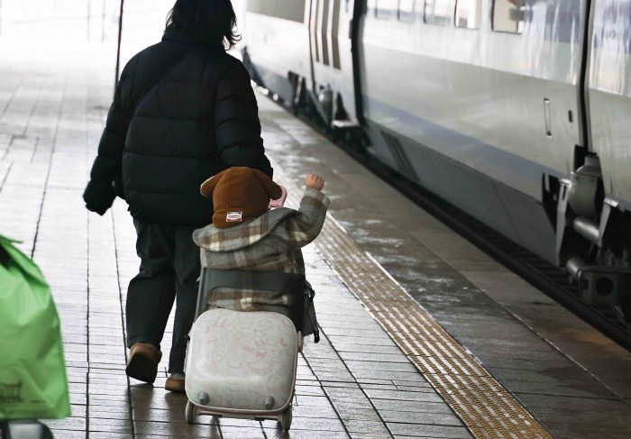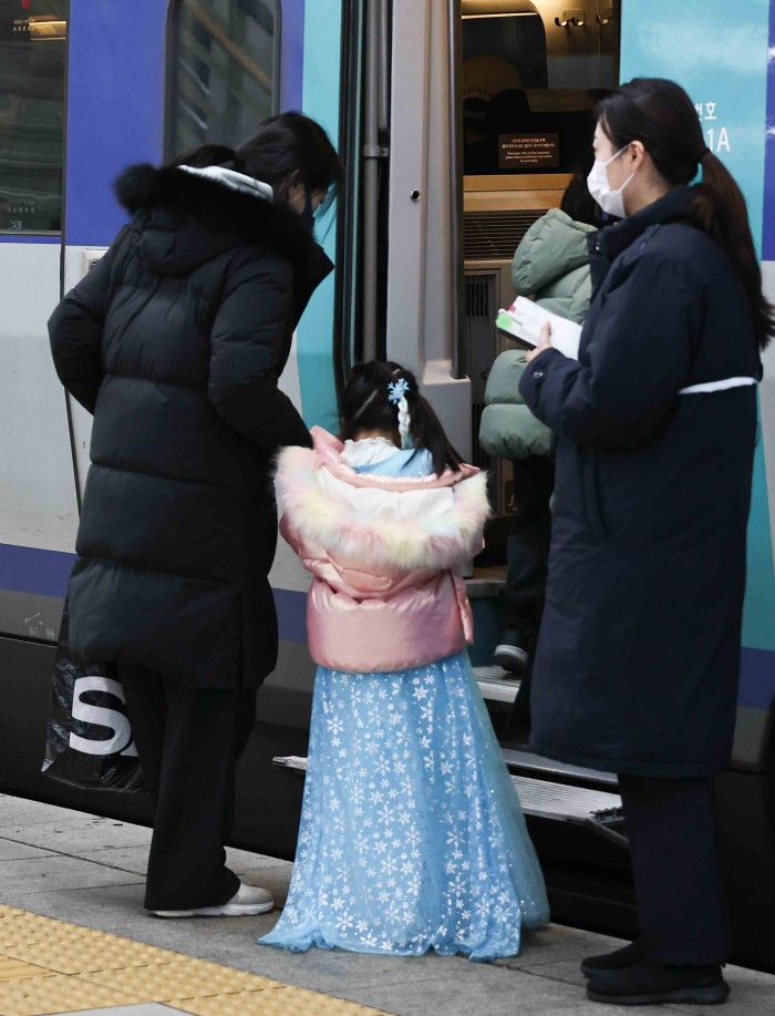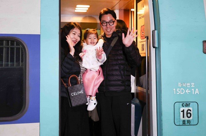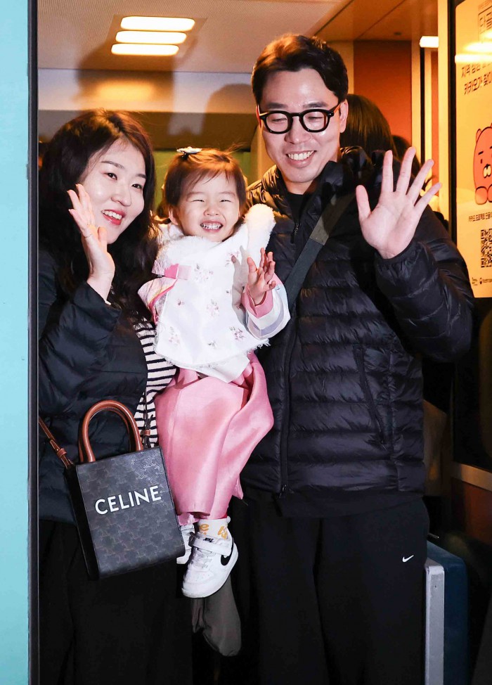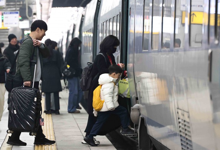 [서울=뉴스핌] 윤창빈 기자 = 설 연휴를 앞둔 13일 오전 서울 용산구 용산역에서 한 가족이 귀성길 열차에 오르고 있다. 2026.02.13 pangbin@newspim.com