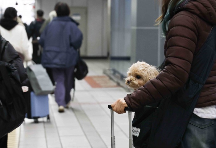 [서울=뉴스핌] 윤창빈 기자 = 설 연휴를 앞둔 13일 오전 서울 용산구 용산역에서 한 반려견이 열차에 오르고 있다. 2026.02.13 pangbin@newspim.com