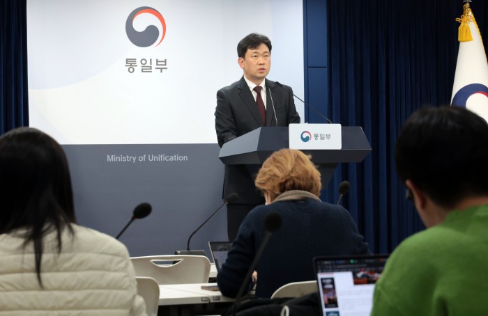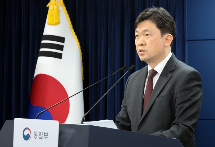 [서울=뉴스핌] 이길동 기자 = 윤민호 통일부 대변인이 13일 서울 종로구 정부서울청사에서 열린 현안 관련 정례브리핑에서 김여정 북 노동당 중앙위 부부장 담화에 대한 통일부 입장을 발표하고 있다. 2026.02.13 gdlee@newspim.com