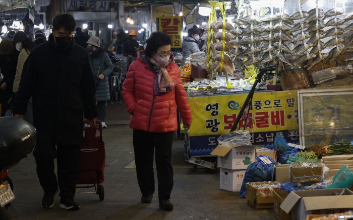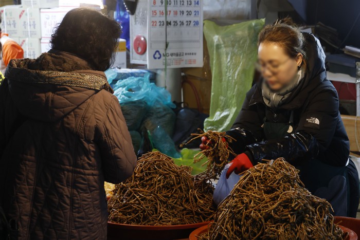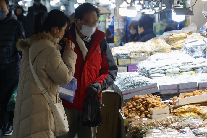 [서울=뉴스핌] 류기찬 기자 = 설 연휴를 사흘 앞둔 13일 오전 서울 동대문구 경동시장을 찾은 시민들이 제수용품을 살펴보고 있다. 2026.02.13 ryuchan0925@newspim.com