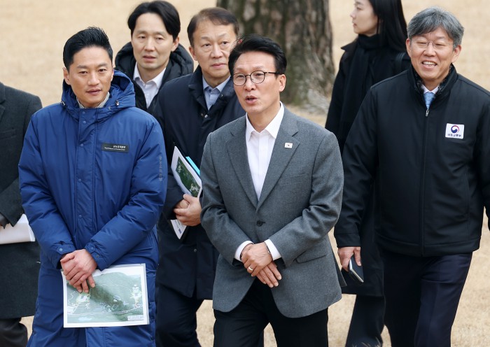 [서울=뉴스핌] 정일구 기자 = 김민석 국무총리가 13일 오후 서울 노원구 강릉을 방문해 1.29 도심주택공급방안 관련 태릉CC 현장점검을 하고 있다. 2026.02.13 mironj19@newspim.com