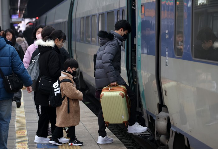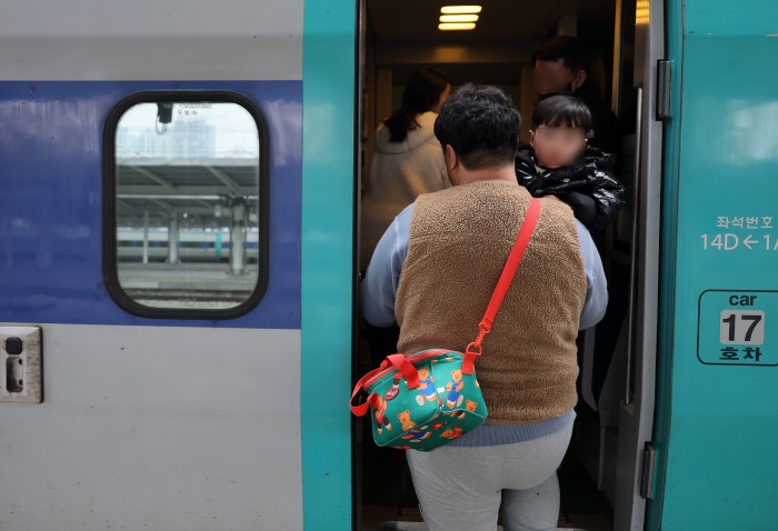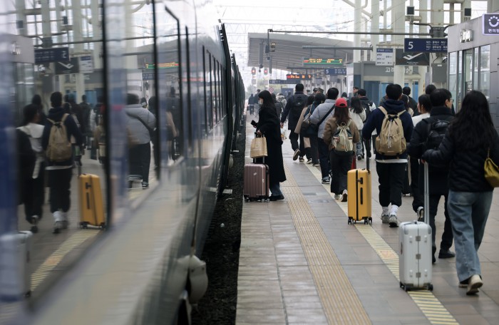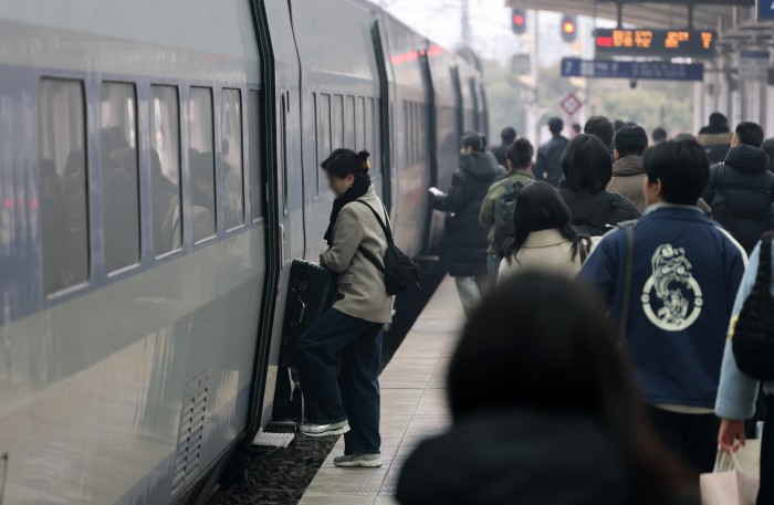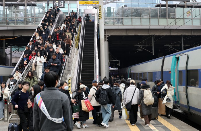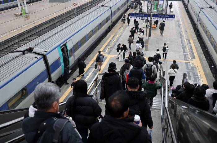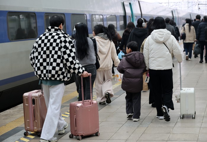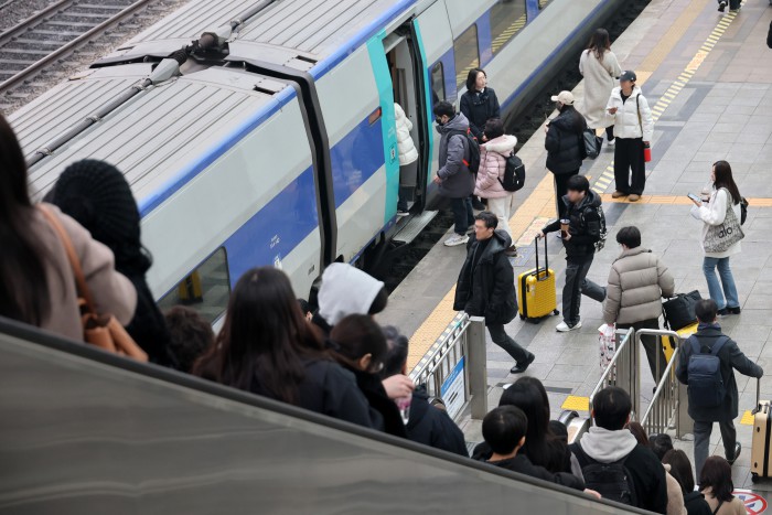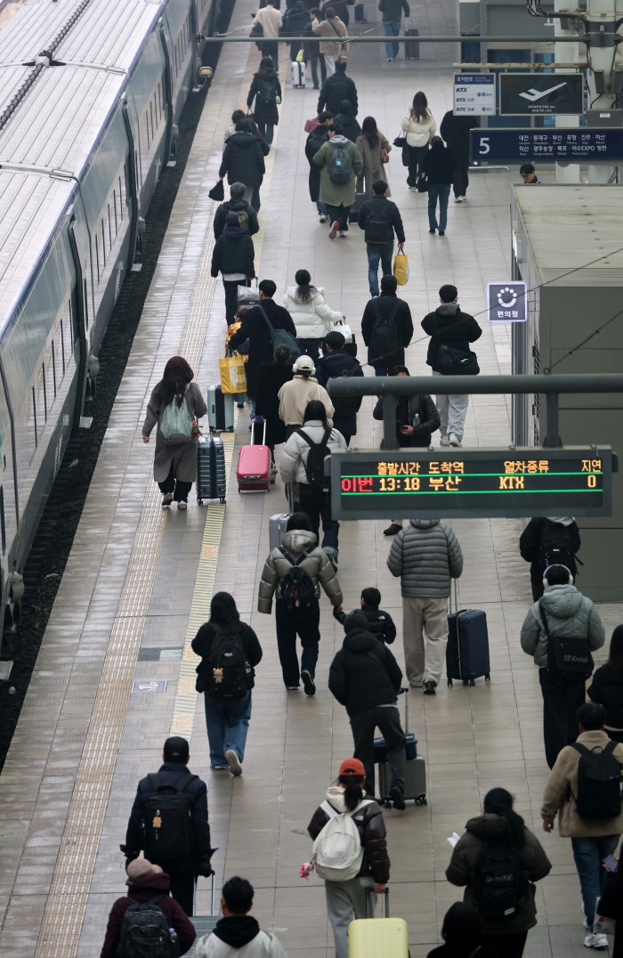 [서울=뉴스핌] 정일구 기자 = 설 명절 연휴를 앞둔 13일 서울 용산구 서울역에서 귀성객들이 열차에 탑승하고 있다. 2026.02.13 mironj19@newspim.com
