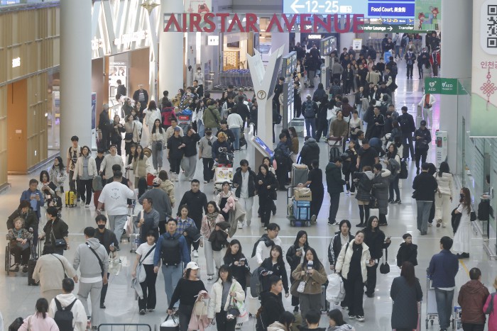 [영종도=뉴스핌] 류기찬 기자 = 설 연휴를 맞이한 15일 오전 인천국제공항 제1여객터미널 면세구역이 여행객들로 북적이고 있다. 2026.02.15 ryuchan0925@newspim.com