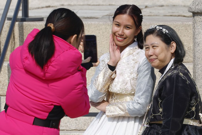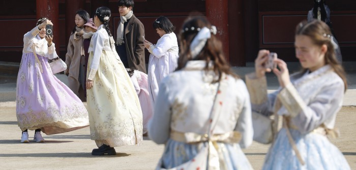 [서울=뉴스핌] 류기찬 기자 = 설 연휴를 맞아 주요 궁궐이 무료로 개방한 15일 오후 서울 종로구 경복궁을 찾은 외국인 관광객들이 기념촬영을 하고 있다. 2026.02.15 ryuchan0925@newspim.com
