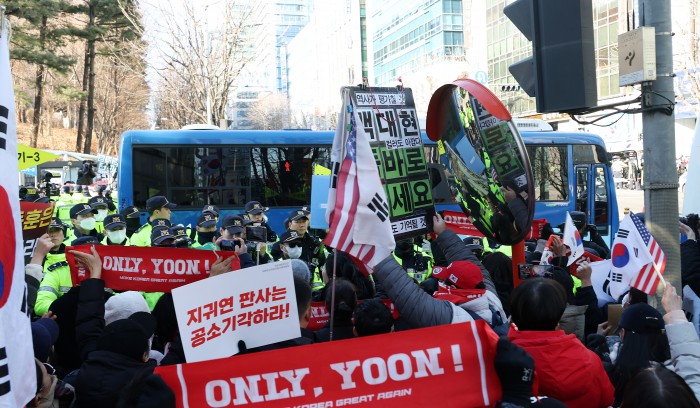 [서울=뉴스핌] 정일구 기자 = 윤석열 전 대통령의 내란 우두머리 혐의에 대한 1심 선고기일인 19일 오후 서울 서초구 서울중앙지방법원에서 윤 전 대통령이 탄 호송차가 법원을 나서고 있다. 서울중앙지법 형사합의25부(지귀연 부장판사)는 이날 윤 전 대통령에게 무기징역을 선고했다. 2026.02.19 mironj19@newspim.com