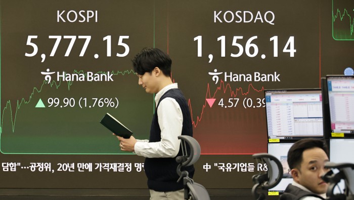 [서울=뉴스핌] 양윤모 기자= 20일 오후 코스피가 전장 종가보다 99.90 포인트(1.76%) 상승하며 5777.15로, 코스닥은 4.57포인트(0.39%) 하락한 1156.14로 거래되는 가운데, 서울 중구 하나은행본점 딜링룸에서 직원들이 업무를 보고 있다.