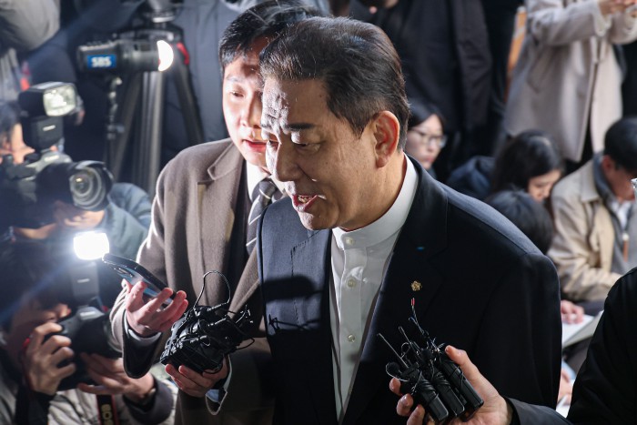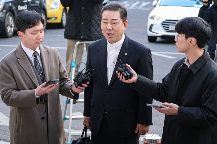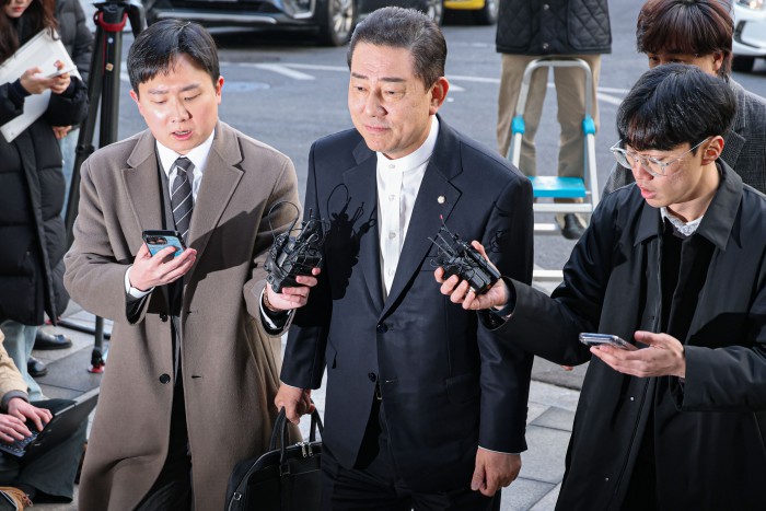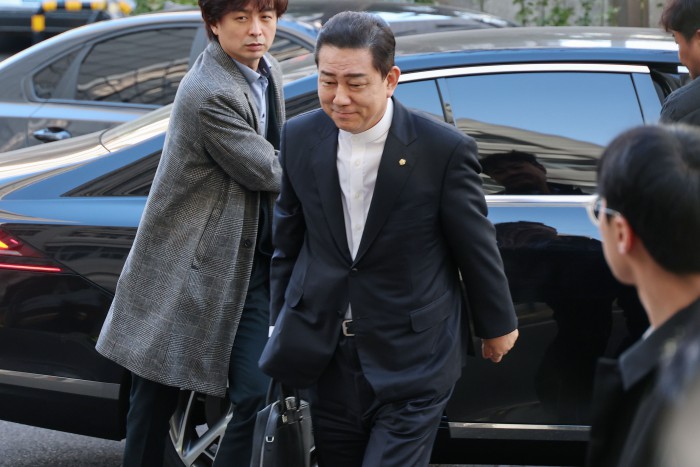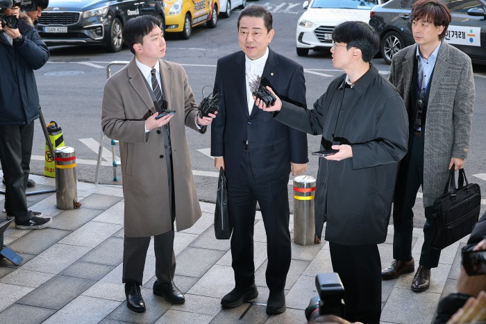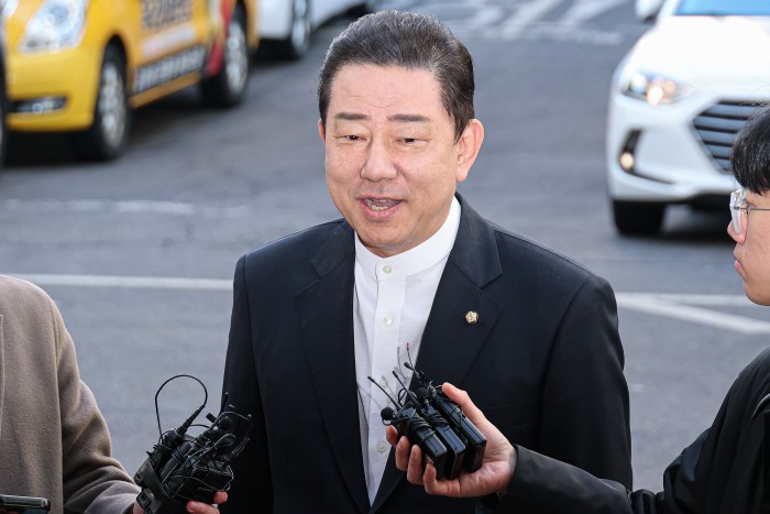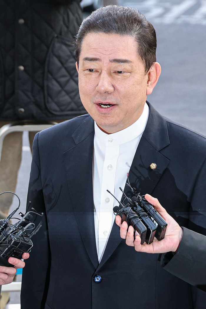 [서울=뉴스핌] 류기찬 기자 = 13가지 의혹을 받는 김병기 무소속 의원이 26일 오전 서울 마포구 서울경찰청 공공범죄수사대에 조사를 받기 위해 출석하고 있다. 2026.02.26 ryuchan0925@newspim.com