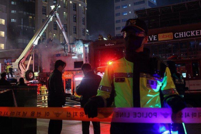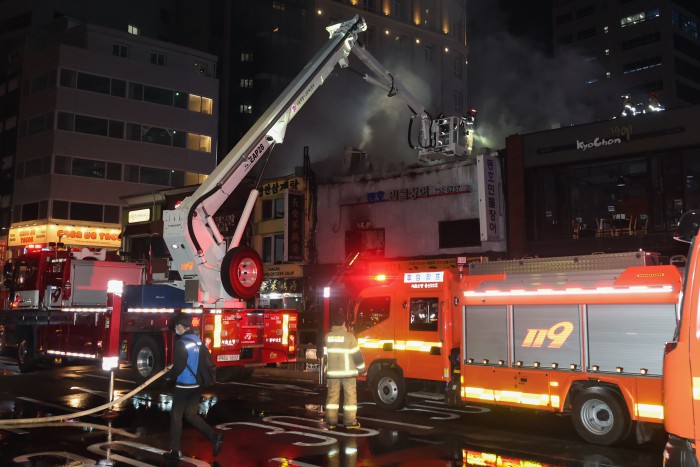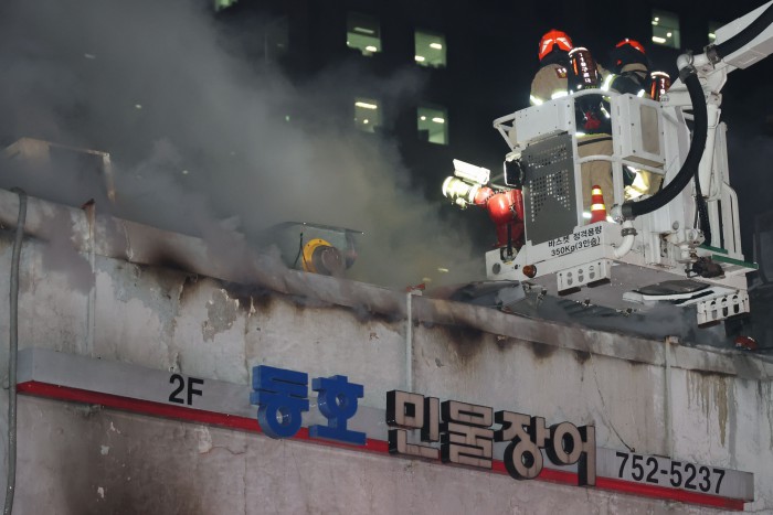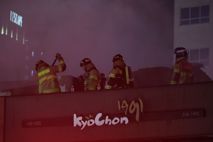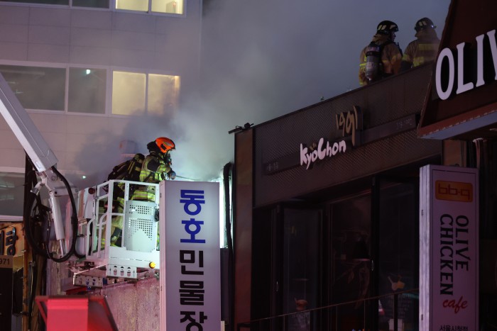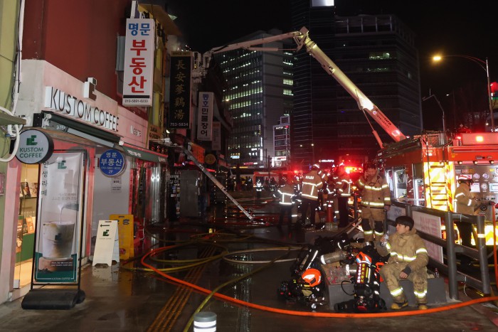 [서울=뉴스핌] 류기찬 기자 = 23일 오후 서울 중구 북창동 먹자골목 상가에서 화재가 발생해 소방대원들이 불길을 진압하고 있다. 2026.02.26 ryuchan0925@newspim.com