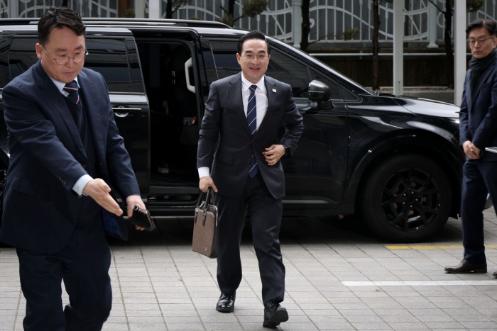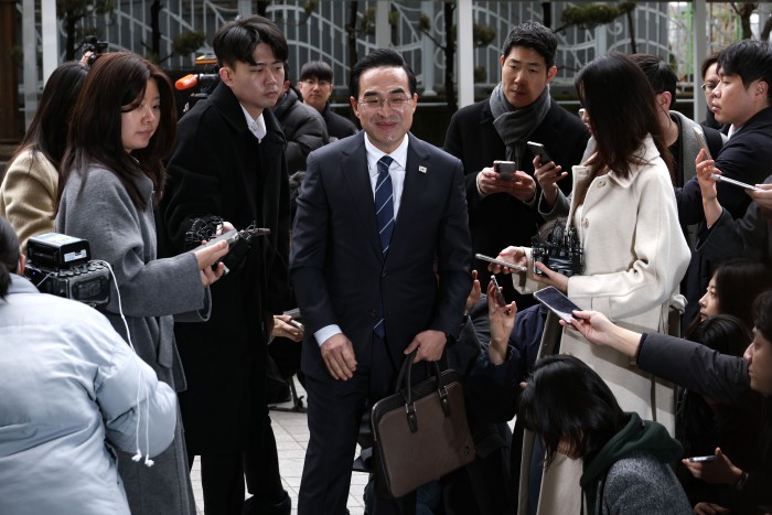 [서울=뉴스핌] 이건주 인턴기자 = 박홍근 기획예산처 장관 후보자가 3일 오전 서울 중구 예금보험공사에 마련된 인사청문회 준비 사무실로 출근하고 있다. 2026.03.03 kunjoo@newspim.com