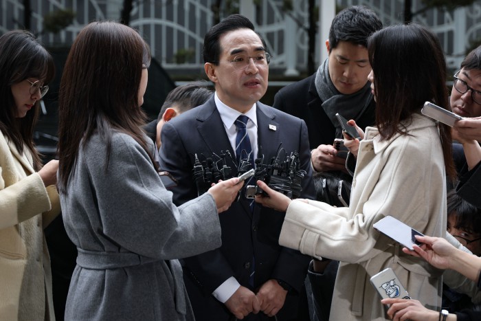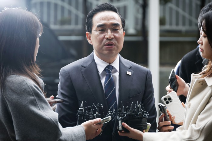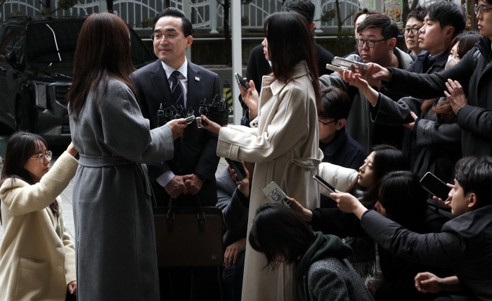 [서울=뉴스핌] 이건주 인턴기자 = 박홍근 기획예산처 장관 후보자가 3일 오전 서울 중구 예금보험공사에 마련된 인사청문회 준비 사무실로 출근하며 취재진의 질문을 받고있다. 2026.03.03 kunjoo@newspim.com