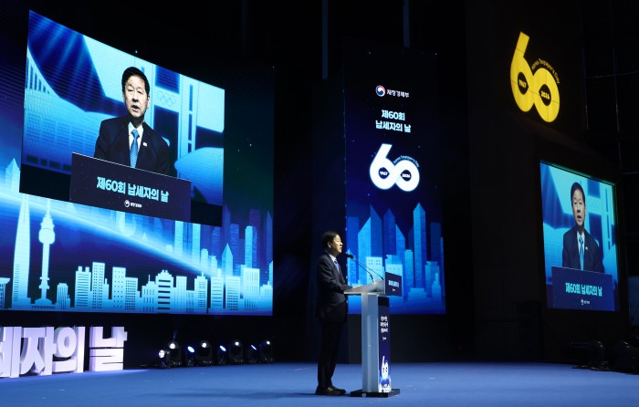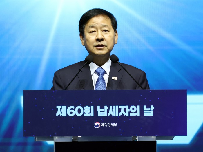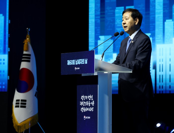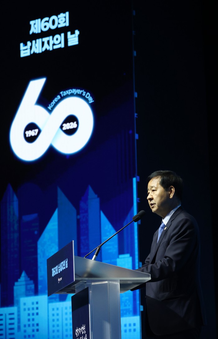 [서울=뉴스핌] 김현우 기자 = 구윤철 경제부총리 겸 재정경제부 장관이 3일 오전 서울 강남구 코엑스 오디토리움에서 열린 제60회 납세자의 날 기념식에서 치사를 하고 있다. 2026.03.03 khwphoto@newspim.com
