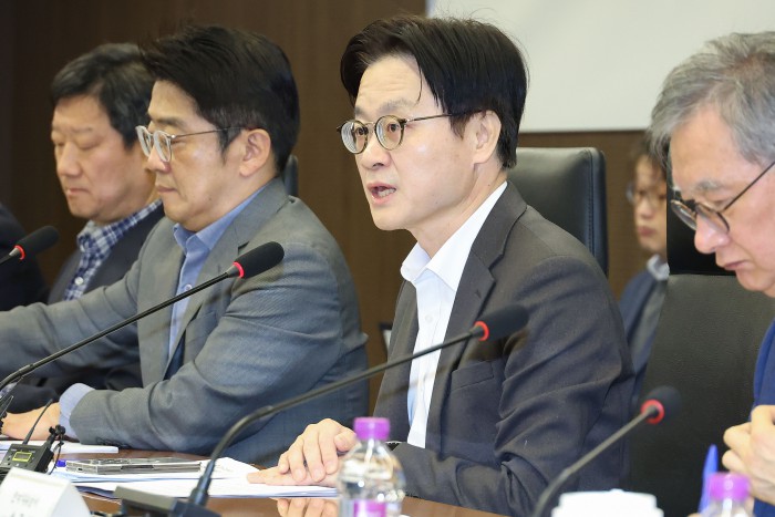 [서울=뉴스핌] 류기찬 기자 = 김정관 산업통상부 장관이 9일 오전 서울 중구 대한상공회의소에서 열린 '중동상황대응본부 회의 겸 석유시장 점검회의'에 참석하고 있다. 2026.03.09 ryuchan0925@newspim.com