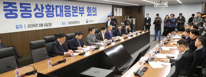 [서울=뉴스핌] 류기찬 기자 = 9일 오전 서울 중구 대한상공회의소에서 '중동상황대응본부 회의 겸 석유시장 점검회의'가 열리고 있다. 2026.03.09 ryuchan0925@newspim.com