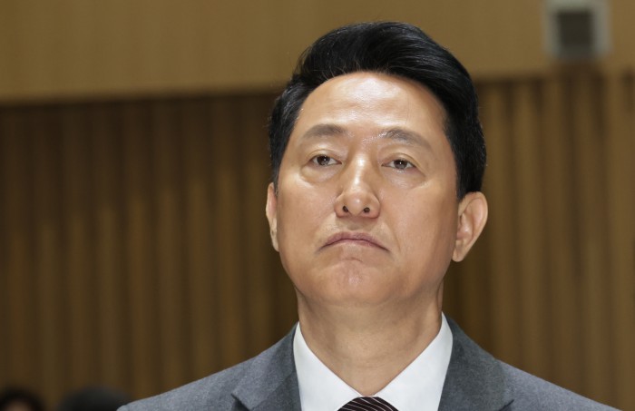 [서울=뉴스핌] 양윤모 기자 = 오세훈 서울시장이 11일 오전 서울시청 3층 대회의실에서 개최된 '서울시 26년 유공납세자 표창장 수여식‘행사에 참석해 생각에 잠겨있다. 2026.03.11 yym58@newspim.com