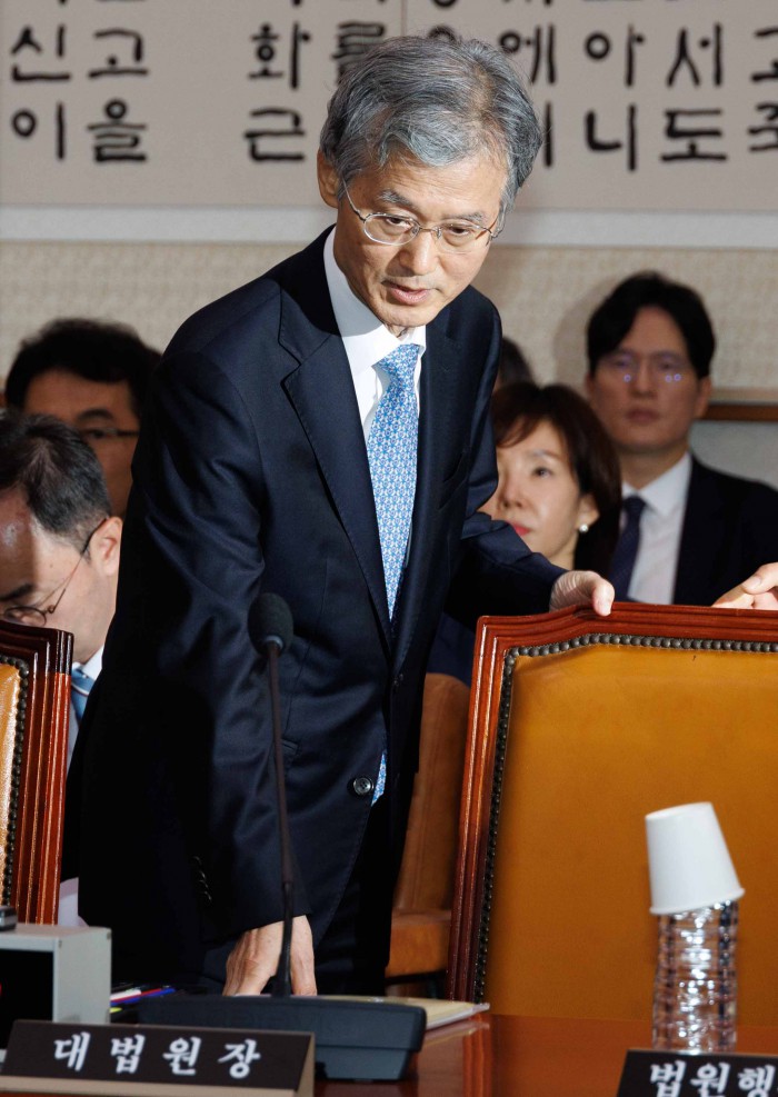 [서울=뉴스핌] 윤창빈 기자 = 조희대 대법원장이 13일 오전 서울 여의도 국회에서 열린 법제사법위원회의 대법원 등에 대한 국정감사에서 인사말을 하고 있다. 2025.10.13 pangbin@newspim.com