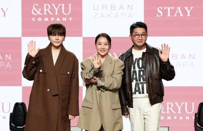 [서울=뉴스핌] 최지환 기자 = 어반자카파 멤버 조현아, 권순일, 박용인이 3일 오후 서울 강남구 일지아트홀에서 열린 어반자카파 신규 EP앨범 'STAY' 발매 쇼케이스에서 포즈를 취하고 있다. 2025.11.03 choipix16@newspim.com
